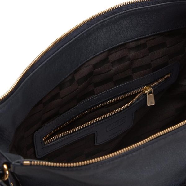 Shoulder bag from the Claire line in refined dual-material version in soft, blue suede with matching smooth leather inserts. Versatile and roomy, perfect for everyday use. Zip fastening.