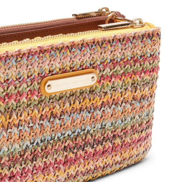 Clutch bag made of multicoloured fabric with a woven effect combined with mango and Sienna leather in a refined and vibrant colour combination. The refined design and simple lines make this bag, made up of three roomy detachable pouches, versatile and chic.