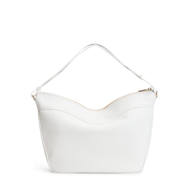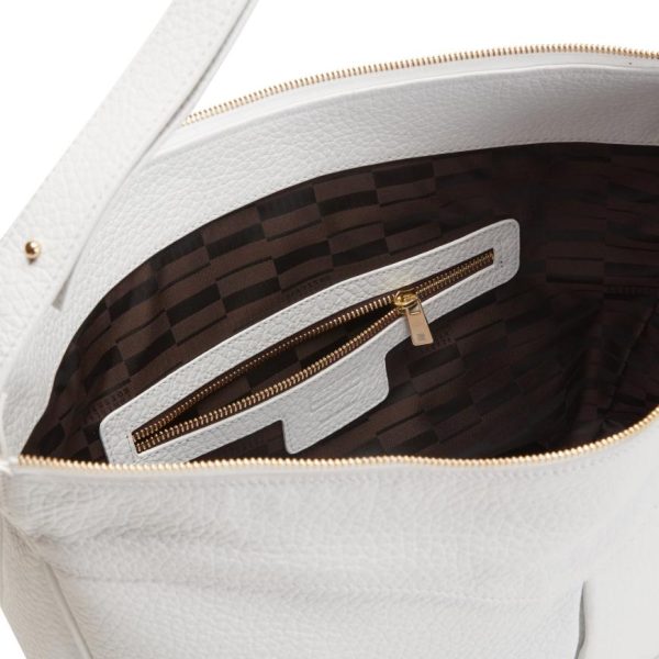 Shoulder bag from the Claire line in refined version in soft, white leather with a visible grain. Versatile and roomy, perfect for everyday use. Zip fastening.
