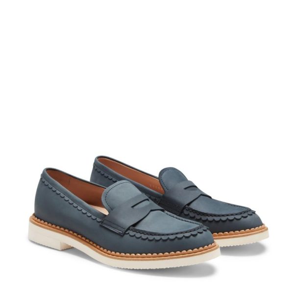 Loafer casual dall’eleganza senza tempo, realizzato in pregiatissimo scamosciato blu. Calzatura donna dalla lavorazione raffinata che evoca la delicatezza del pizzo sul bordo della tomaia e sulla guardia della suola. Dettagli che conferiscono un tocco di sofisticata raffinatezza.