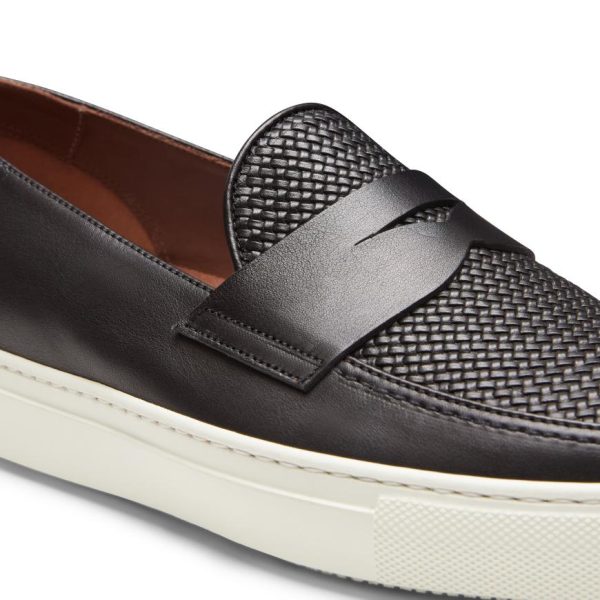 Loafer di straordinaria eleganza con cupsole realizzata in morbida pelle nera verniciata con tomaia rifinita. La pelle viene immersa nel colore e poi abilmente spazzolata a mano. Calzatura casual ma raffinata con vampita finemente intrecciata artigianalmente. Suola in gomma con battuta personalizzata esclusiva.