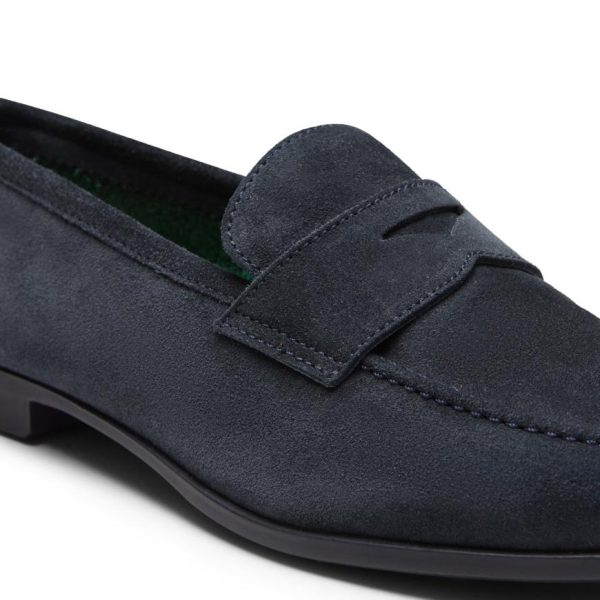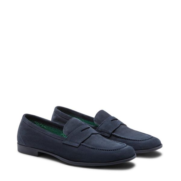 Band loafer iconico della linea Yacht, realizzato in pregiatissima pelle scamosciata blu dalla texture raffinata. La fodera in spugna traspirante, il sottopiede in morbida pelle e la suola in gomma ultrasottile e leggera rendono questa calzatura un capolavoro di comfort ed eleganza, perfetto per le occasioni estive più ricercate