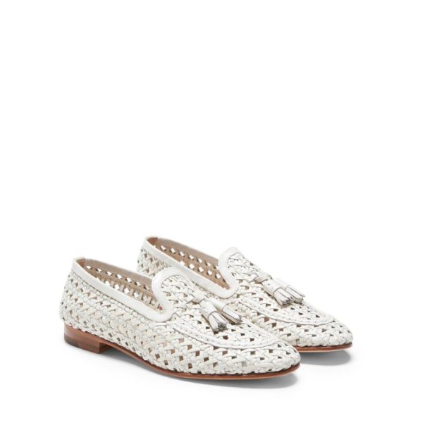 The sophisticated Brera loafer made of soft, ivory woven leather. The fine craftsmanship of the threading features evenly spaced holes in the upper. Lightweight summer footwear.