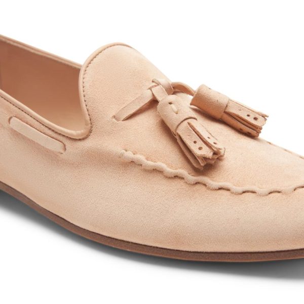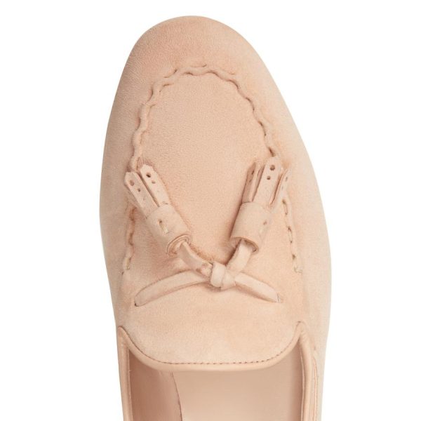 Peach suede Brera loafer, an icon of timeless elegance and innovation, becomes the star of the summer collection thanks to the lettuce leaf trim stitching. This technique highlights the master craftsmanship, the thread is stretched and worked to create a serpentine effect that gives a dynamic and three-dimensional look to the shoe.