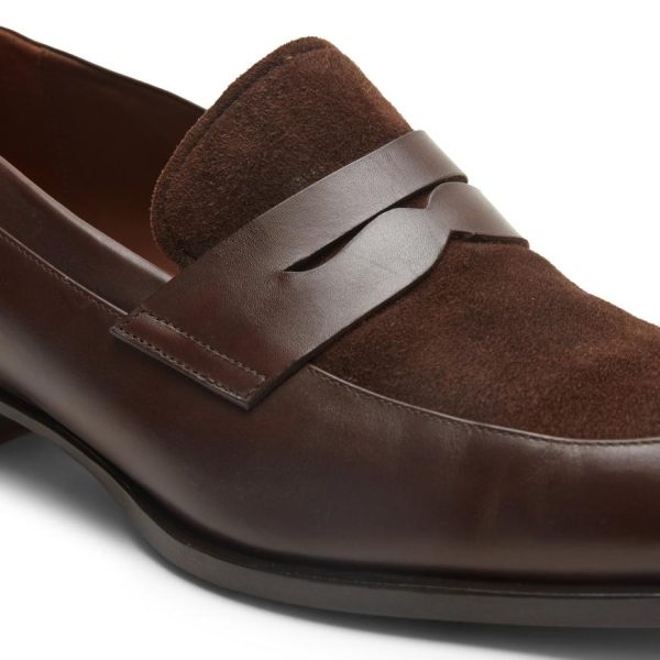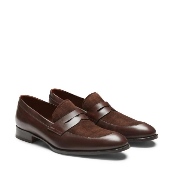 Refined bi-material loafer made of suede and soft brown tone-on-tone leather. The shoe is characterised by stitching that weaves wavy lines on the upper. The exclusive craftsmanship through brushing creates a slightly antiqued effect.
