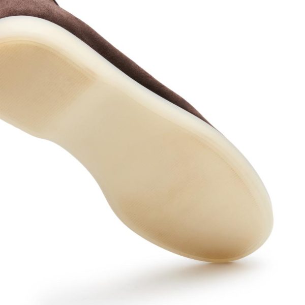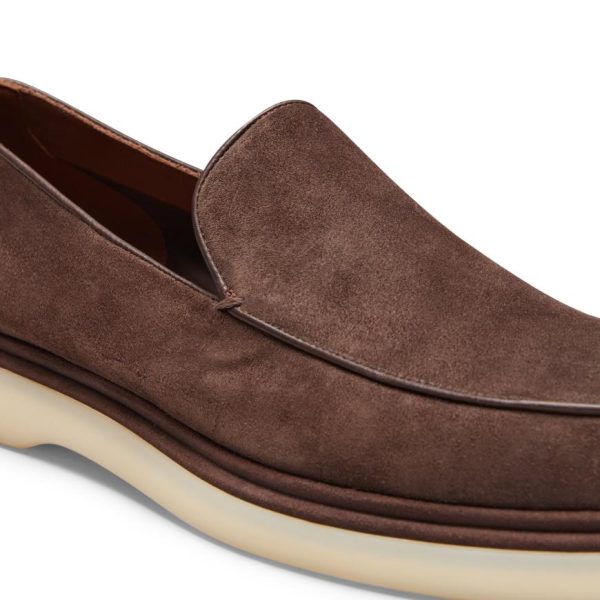 Raffinati mocassini con punta quadrata realizzati in pregiatissima pelle scamosciata marrone dalla texture morbida e avvolgente. Questo capo di calzatura casual chic vanta dettagli di altissima fattoria come la bordatura rivestita nella stessa pelle della tomaia, un segno distintivo dell’eccellenza artigianale italiana.