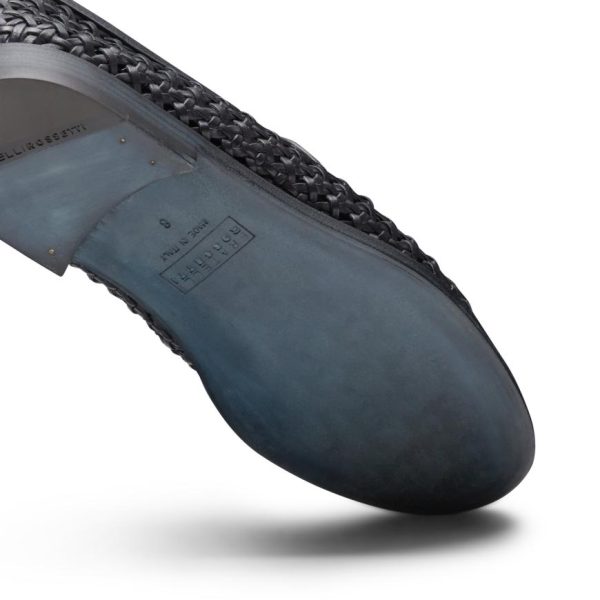 Brera loafer made of blue dyed leather and finished upper. The leather is dipped in colour and then brushed. The open weave features equally spaced holes in the upper, fine workmanship and craftsmanship. The leather sole is hand-dyed and wax-polished in the same colour as the upper.