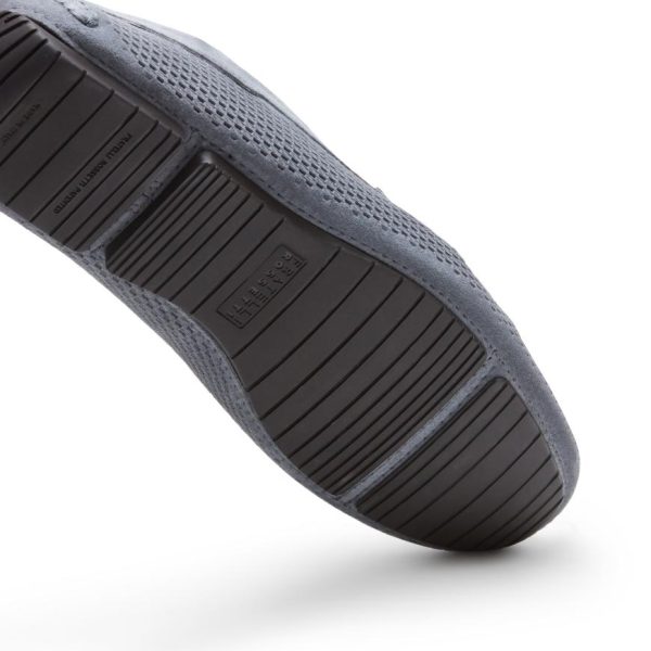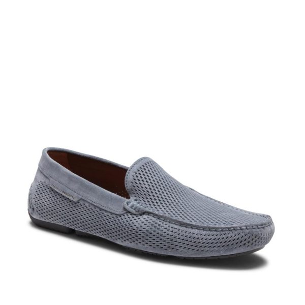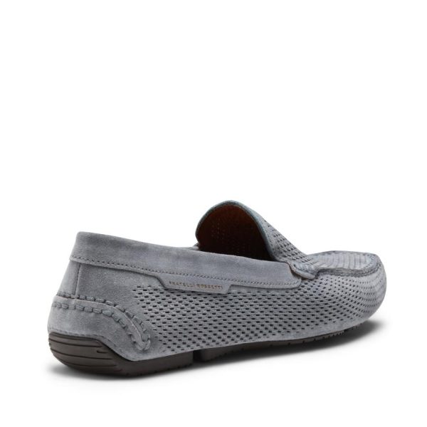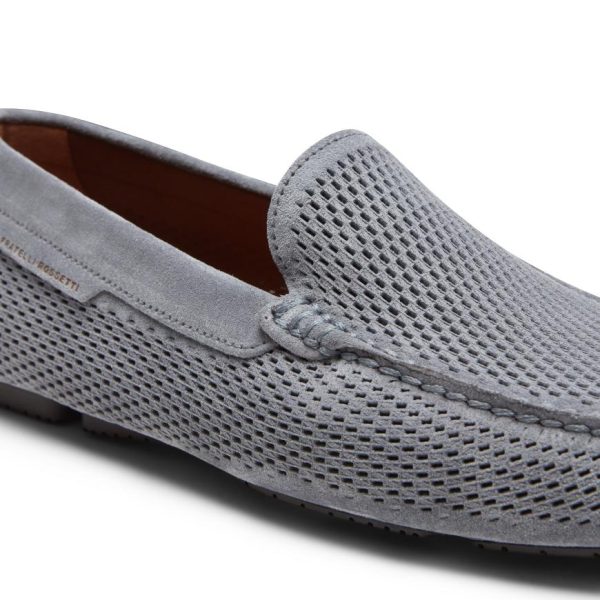 Tubular driver loafer made of soft, stone grey suede. Characterised by a fully perforated upper and hand-stitching. Fresh and lightweight footwear perfect for a dynamic summer look.