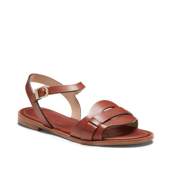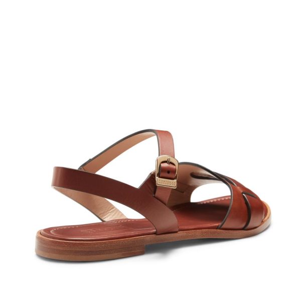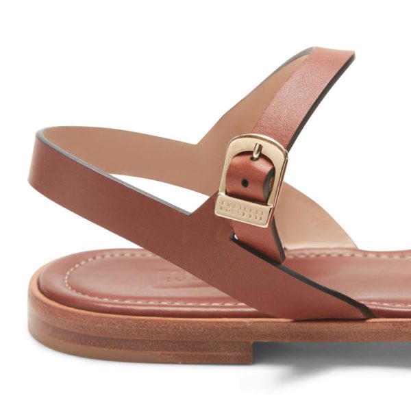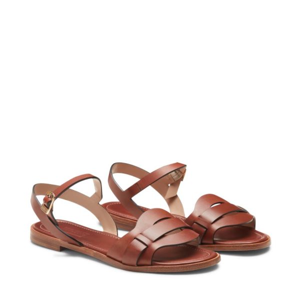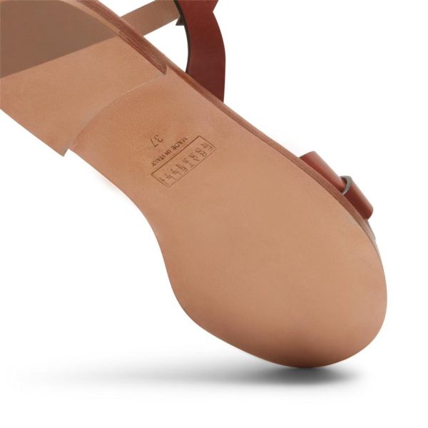 Flat sandal featuring a minimal and refined look made of soft almond leather with an antiqued effect. Sophisticated style shoe characterised by smooth waxed leather bands in a contrasting colour.