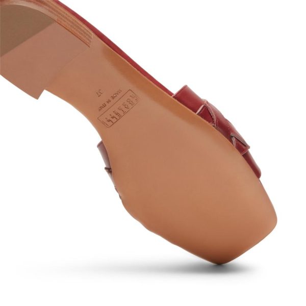 Raffinato sandalo flat realizzato in morbida pelle di vinaccia dalla finitura levigata con un affascinante effetto leggermente anticato. Le bande intrecciate creano un design geometrico di sofisticata eleganza che cattura lo sguardo.
