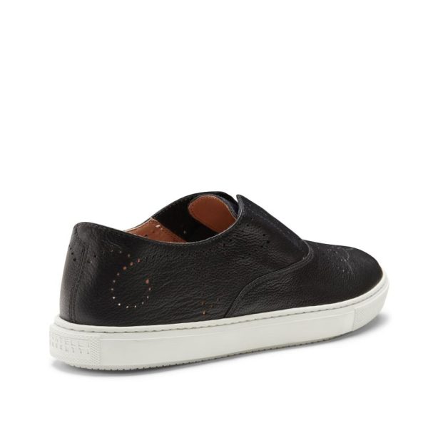 Hobo Sport sneaker made of soft black leather with a natural grain with cupsole and perforated details. Casual and refined footwear that can be worn without laces thanks to practical internal elastic bands. Rubber sole with custom tread.