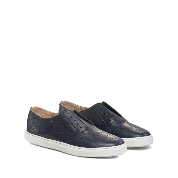 Hobo Sport sneaker made of soft blue leather with a natural grain with cupsole and perforated details. Casual and refined footwear that can be worn without laces thanks to practical internal elastic bands. Rubber sole with custom tread.