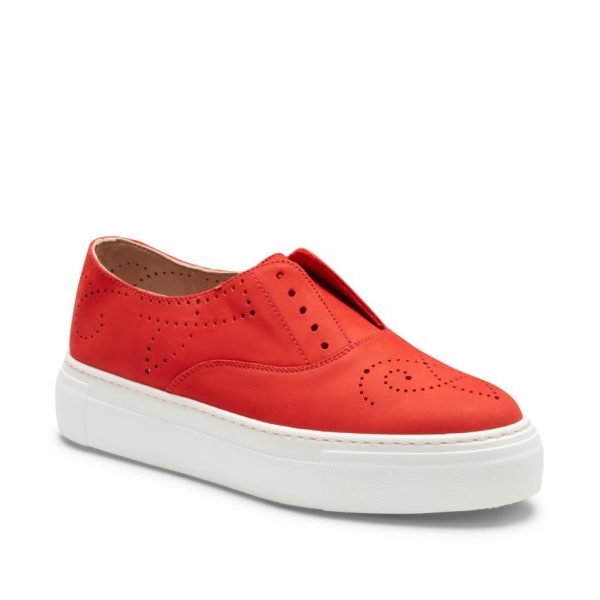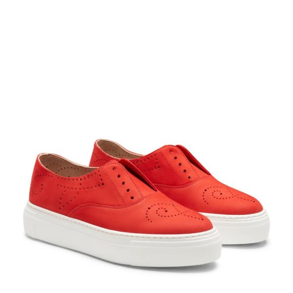 Hobo Sport sneaker with perforated details made of soft nubuck-effect red leather. Casual and refined footwear that can be worn without laces thanks to practical internal elastic bands. Rubber cupsole with custom tread.