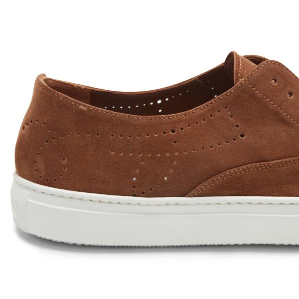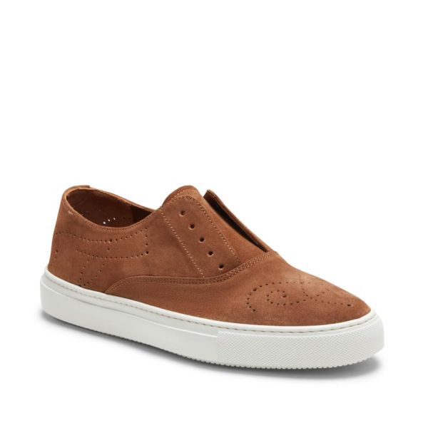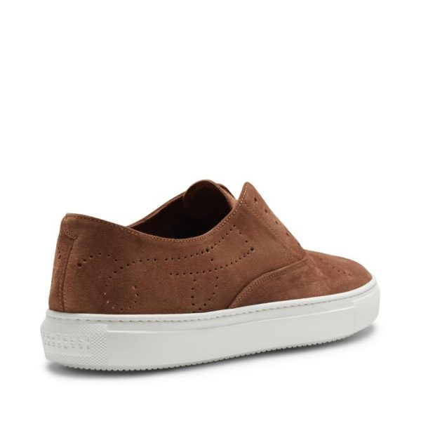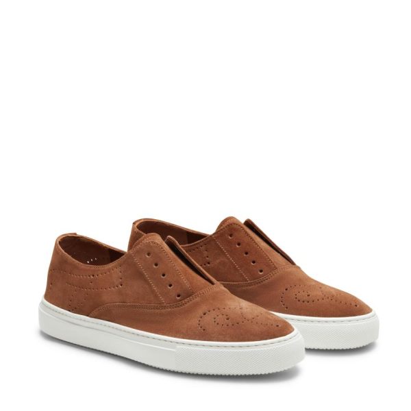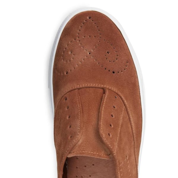 Hobo Sport sneaker with cupsole and perforated details, made of soft cognac suede. Casual and refined footwear that can be worn without laces thanks to practical internal elastic bands. Rubber sole with custom tread.