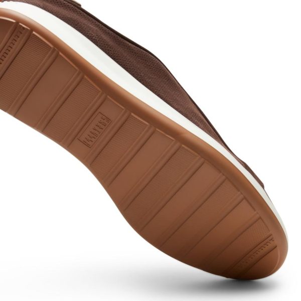 Realizzate in pregiatissima pelle scamosciata marrone perforata, morbidissima al tatto, queste sneakers uniscono magistralmente eleganza raffinata e comfort eccezionale. Grazie agli elastici incrociati si indossano con la stessa facilità di una pantofola, offrendo un’esperienza di calzata supremamente confortevole. Suola in gomma bicolore, leggera e flessibile per una camminata naturale.