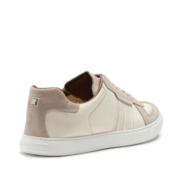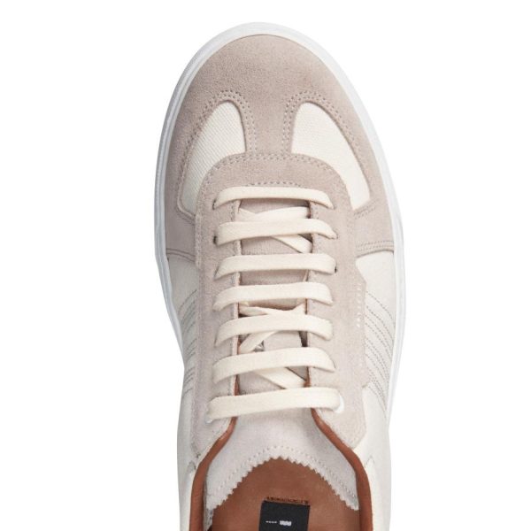 Sneaker with rubber cupsole with a sporty and dynamic look. Crafted from soft sand suede combined with ivory tone-on-tone padded cotton blend fabric. Insert on the heel with metal logo.