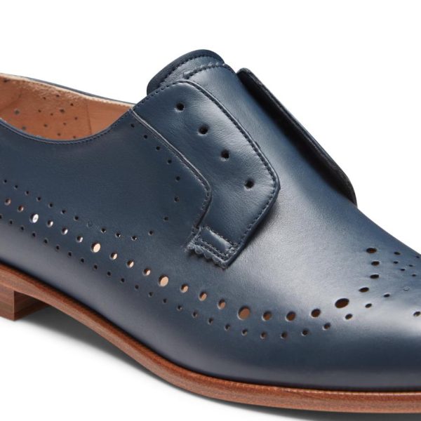 Lace-up Derby shoe with a slightly elongated shape, made of soft, ocean blue leather with a nappa effect. Footwear with a masculine and sophisticated look, the perforations that decorate the upper make the shoe fresh and light, perfect for summer outfits.