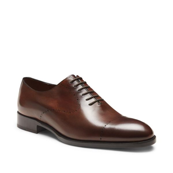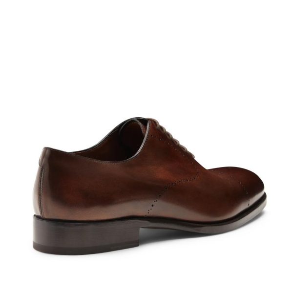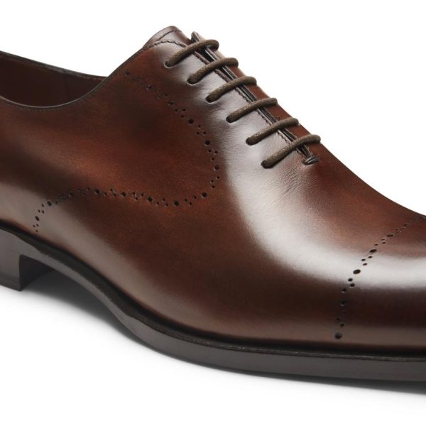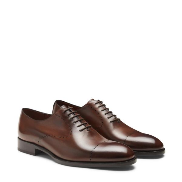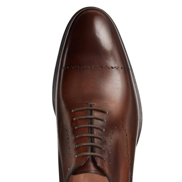 Eleganza senza tempo per le scarpe Oxford affusolate realizzate in pelle tabacco sbiancata e successivamente ricolorata a mano, donando alla pelle un aspetto lucido e artigianale. Con un’abile combinazione di toni chiari e scuri che crea un effetto leggermente anticato sulla punta e sul contrafforte.