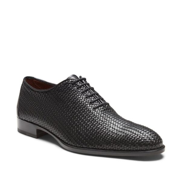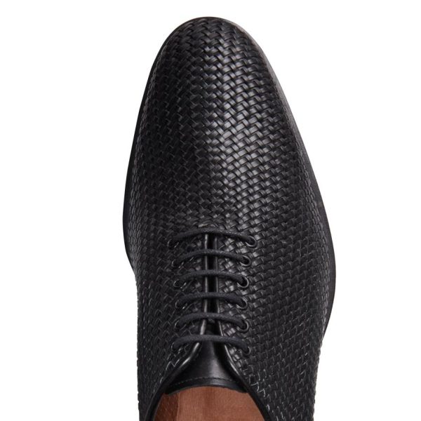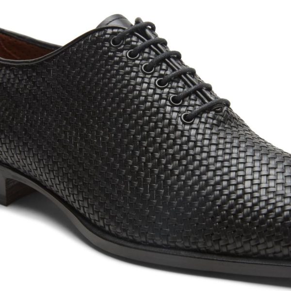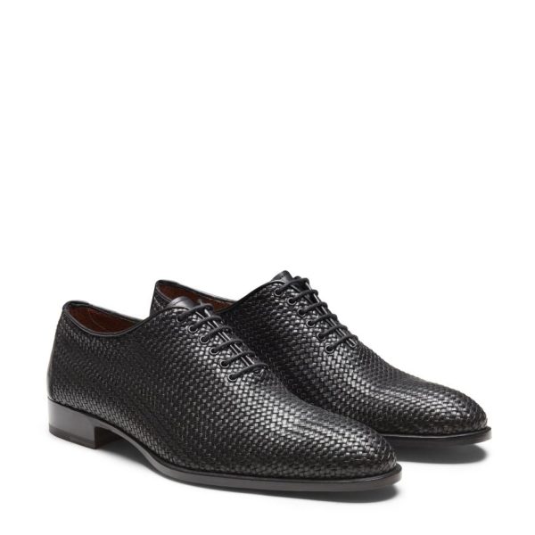 Stringate Uomo con Doppia Fibbia in Pelle Intrecciata Nera – Fratelli Rossetti