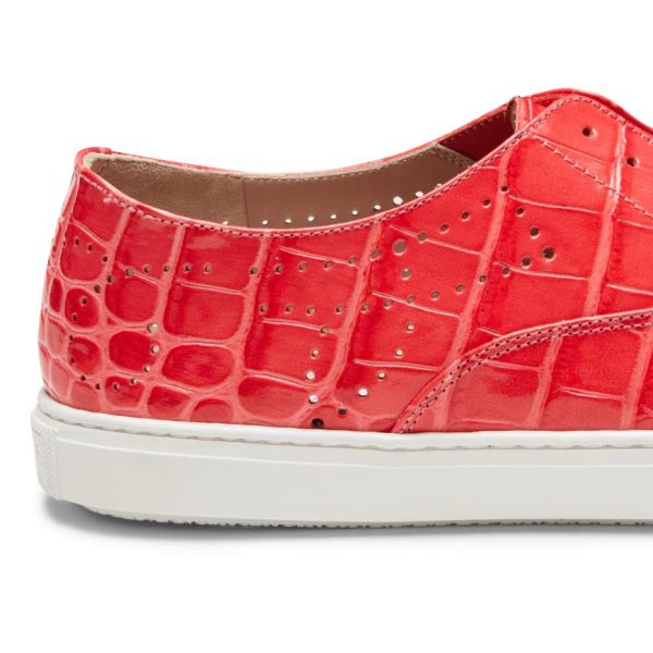 Hobo Sport sneaker made of soft coral leather with crocodile-effect print, with cupsole and perforated details. Casual and refined footwear that can be worn without laces thanks to practical internal elastic bands. Rubber sole with custom tread.