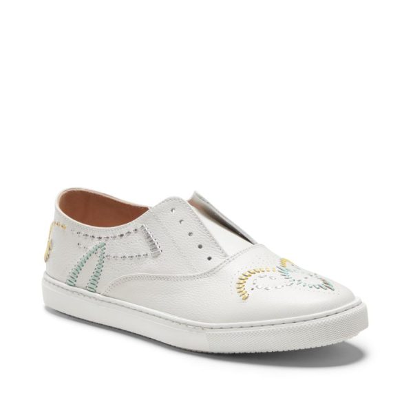 Hobo Sport sneaker made of white leather with a natural grain, with special coloured patent leather threading, with cupsole and perforated details. Casual and refined footwear that can be worn without laces thanks to practical internal elastic bands. Rubber sole with custom tread.