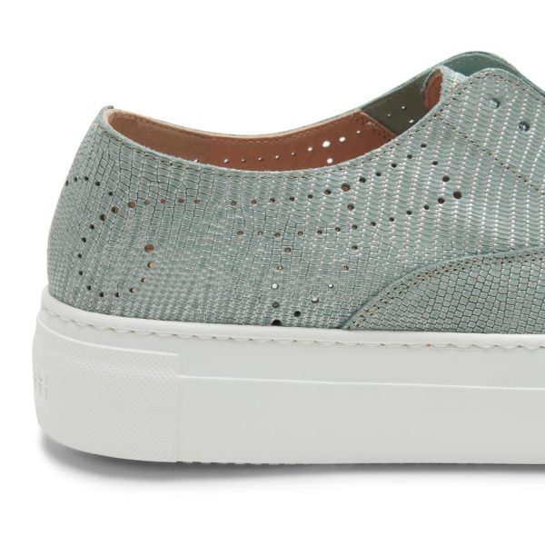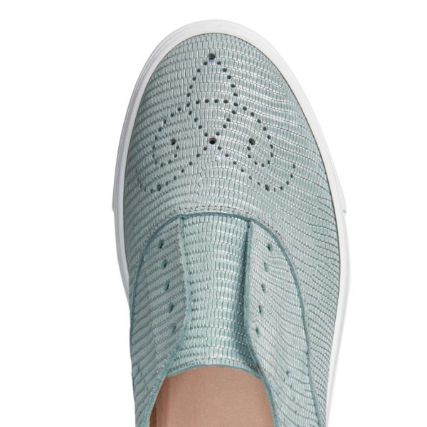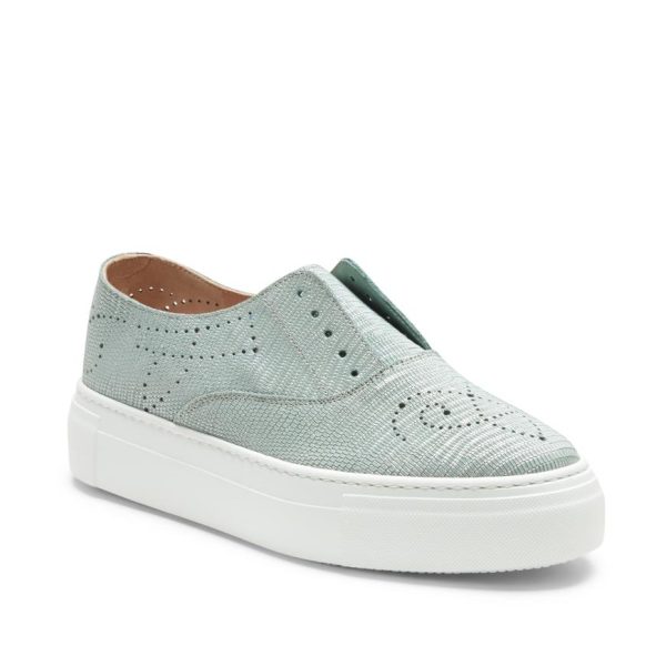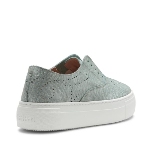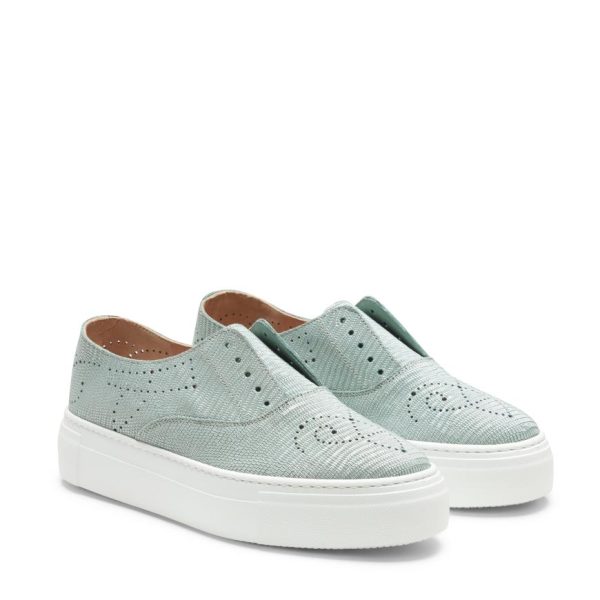 Hobo Sport sneaker made of willow green nubuck and lizard-effect print, with cupsole and perforated details. Casual and refined footwear that can be worn without laces thanks to practical internal elastic bands. Rubber sole with custom tread.