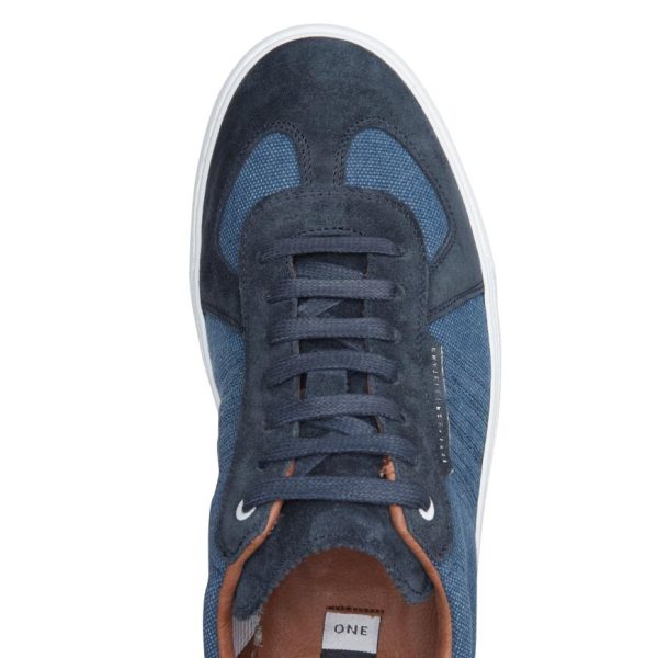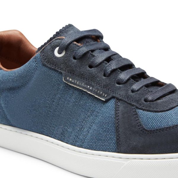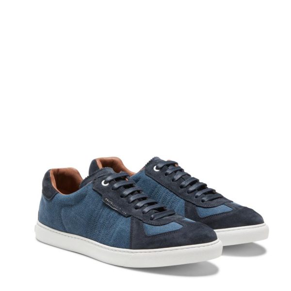 Sneaker with rubber cupsole with a sporty and dynamic look. Crafted from soft blue suede combined with tone-on-tone padded cotton blend fabric. Insert on the heel with metal logo.
