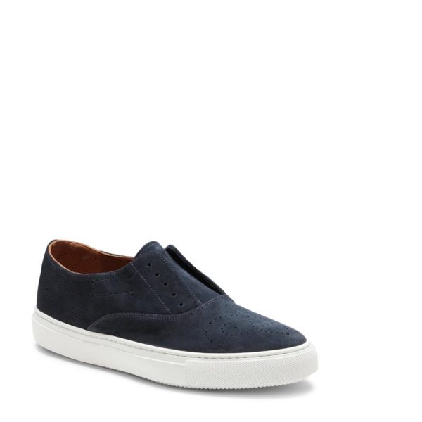 Hobo Sport sneaker with cupsole and perforated details, made of soft blue suede. Casual and refined footwear that can be worn without laces thanks to practical internal elastic bands. Rubber sole with custom tread.