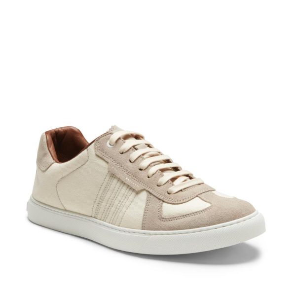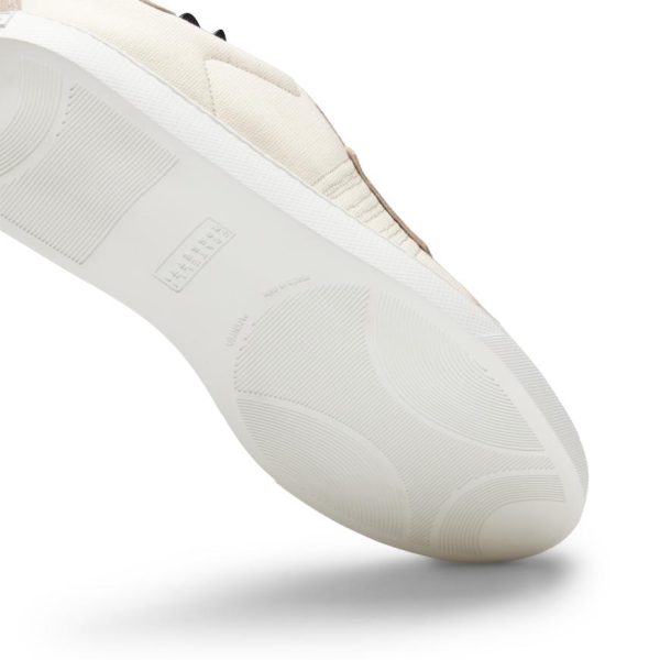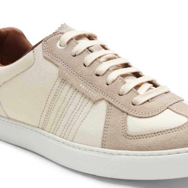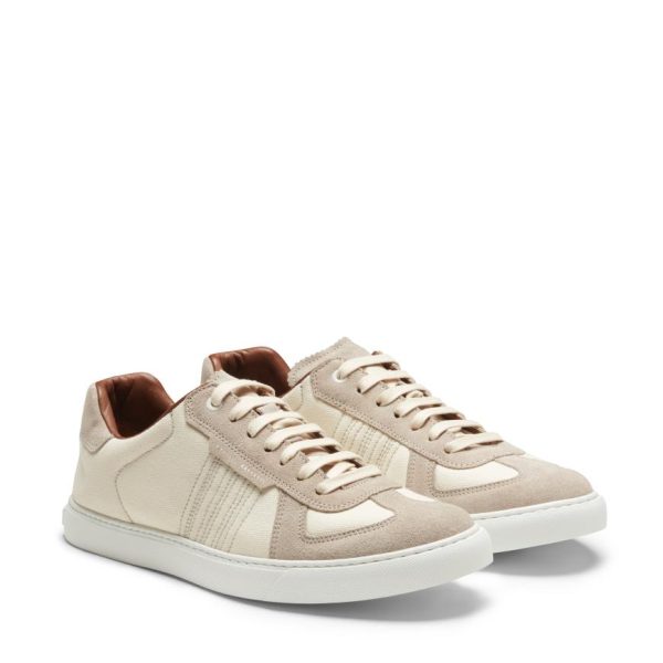 Sneaker with rubber cupsole with a sporty and dynamic look. Crafted from soft sand suede combined with ivory tone-on-tone padded cotton blend fabric. Insert on the heel with metal logo.