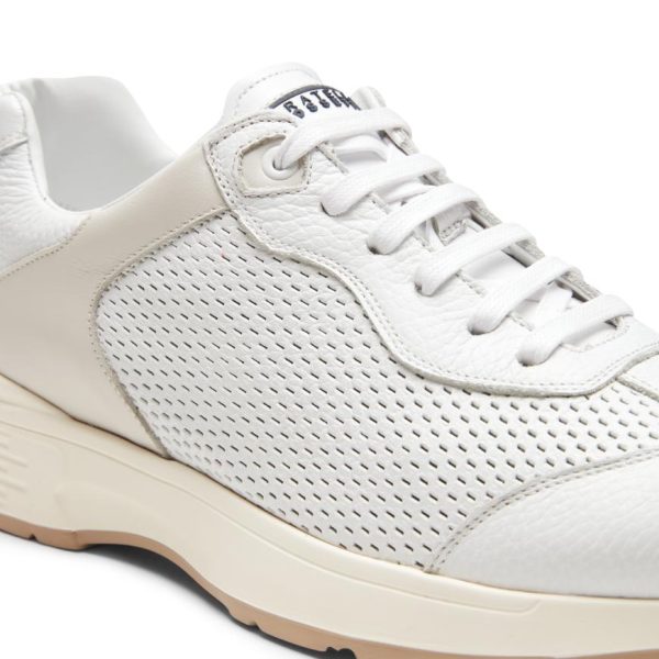 Sporty sneaker crafted from soft, refined deerskin and smooth white leather. The model combines sporty design with refined details, featuring perforations along the sides of the upper that keep the shoe breathable during summer wear. Special two-tone rubber sole.